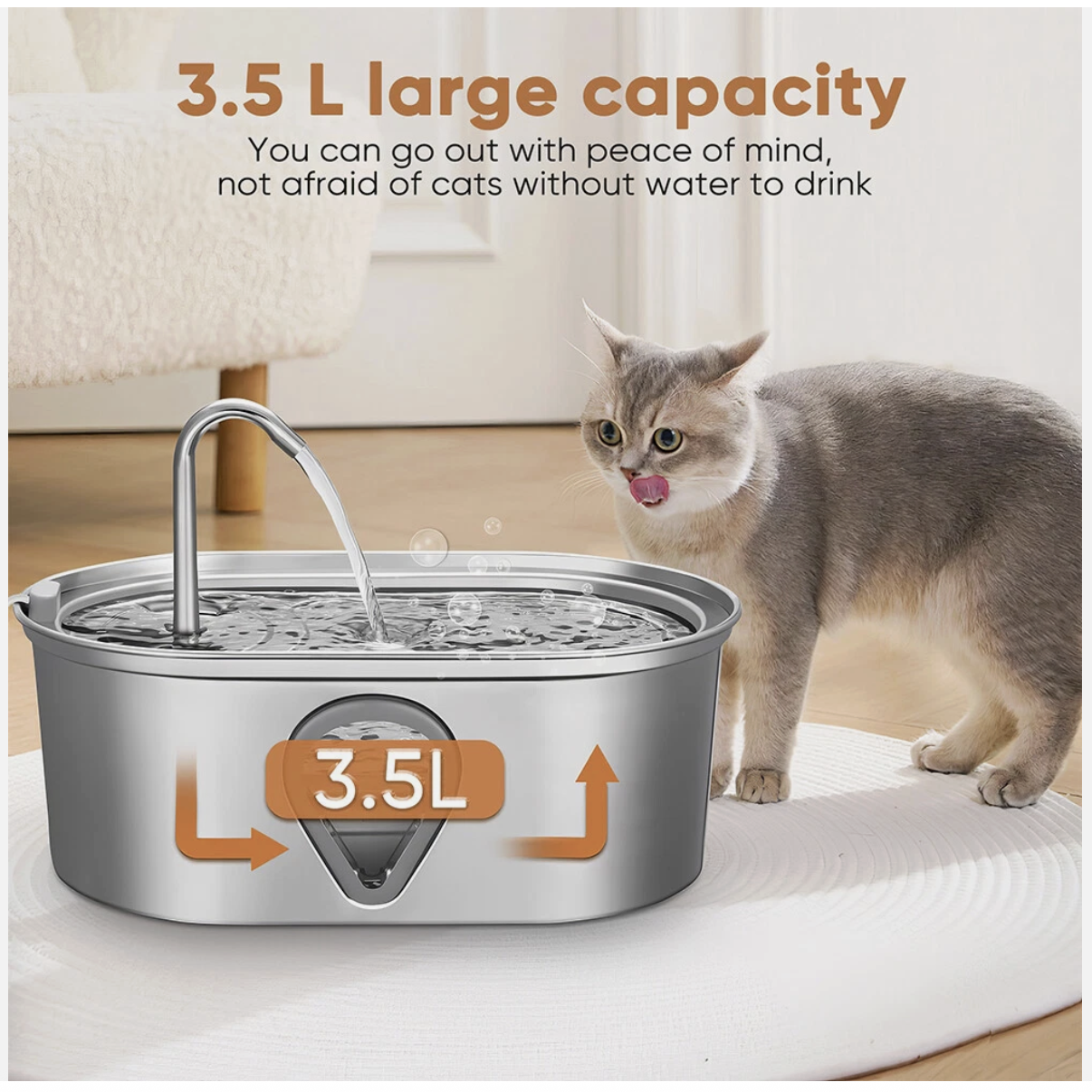 Cat Drinker, 3.5L Large Capacity Automatic Stainless Steel Pet Drinking Machine, Water Level Display Window, Provides Flowing Water, Ultra-Quiet Water Pump, 4 Sets of Replacement Filters.