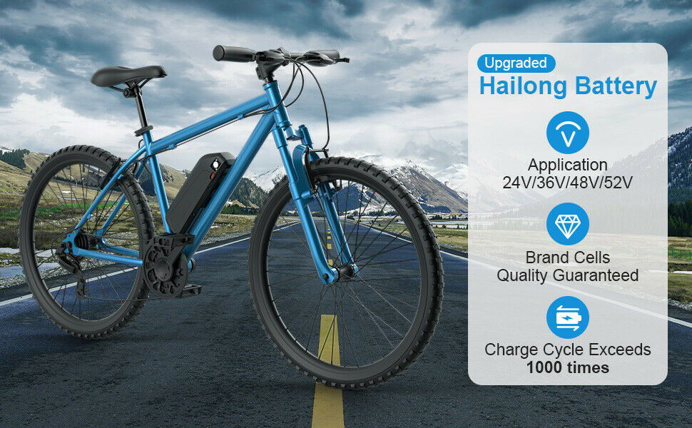 36V 15AH EBike Battery Pack For Motor 200W 500W Tricycle Down Tube USB Hailong