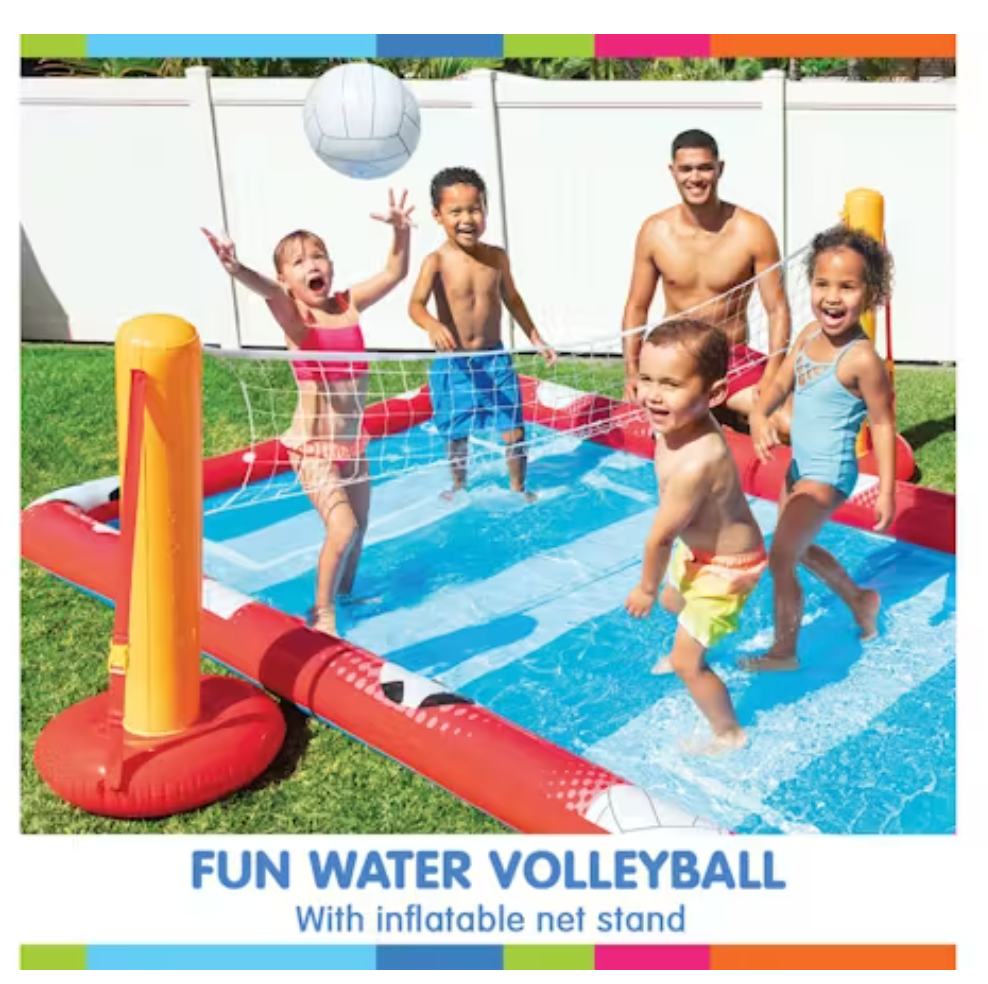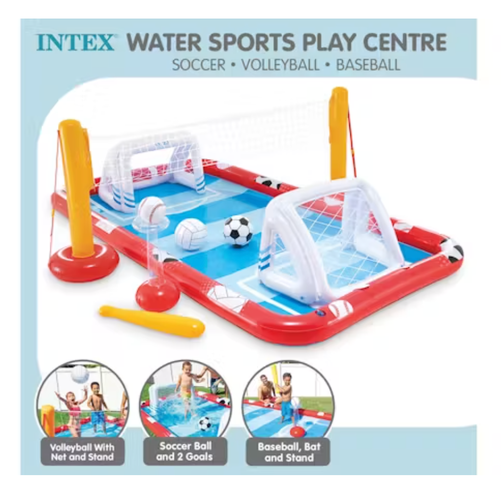 Triple the fun with this Intex Inflatable Action Sports Play Centre! A perfect summer entertainment for kids, this inflatable mini pool features three fun sports activities that children will surely enjoy—soccer ball, volleyball, and baseball. Now you can watch youngsters have fun splashing while engaging in physical activities.