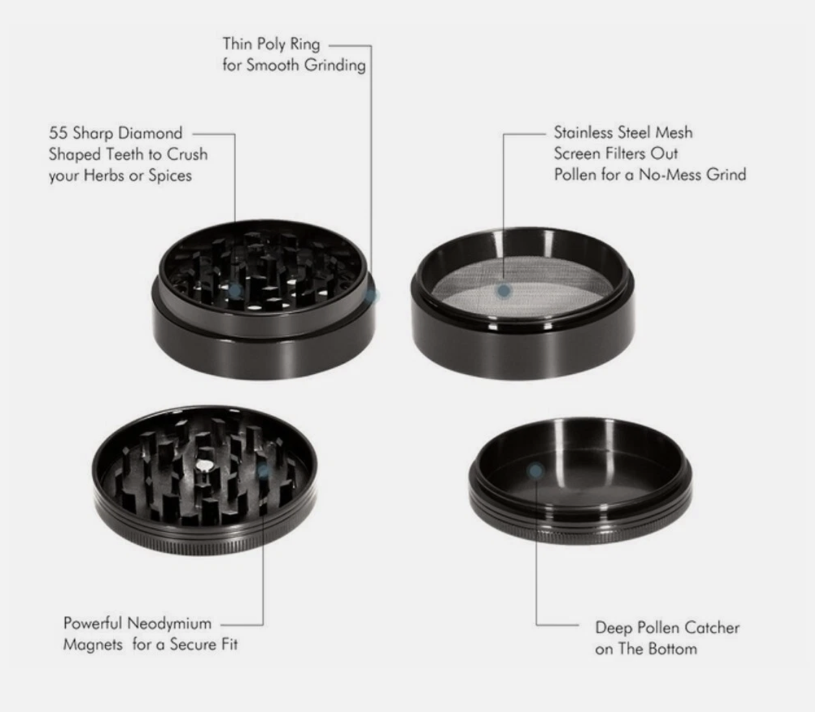 55mm DIA 4 Layer Metal Zinc Alloy Herb Tobacco Grinder Hand Muller Smoke Crusher