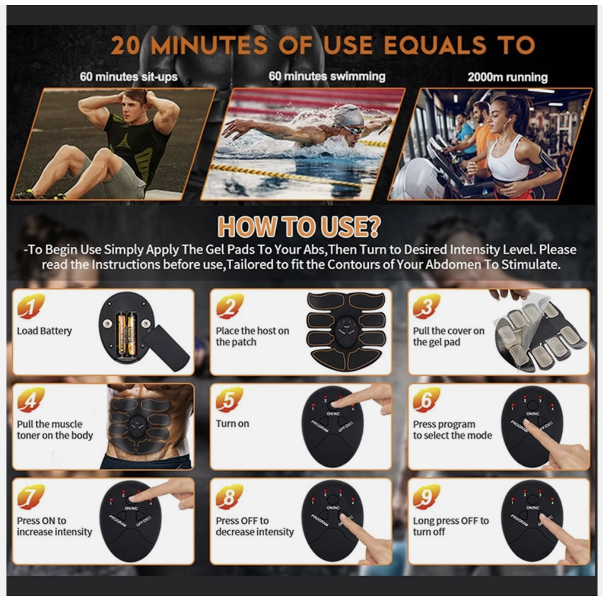 Convenient and Safe to Use: It's light and portable, which can be worn unobtrusively under your clothes. You can exercise your muscles while reading, doing household chores, in the gym, or during business or leisure trips. The back of the patch is made of soft silica gel and justly fits your skin. It is also harmless and odourless. Just attach it to your body one time per day, and easily achieve your exercise target.
