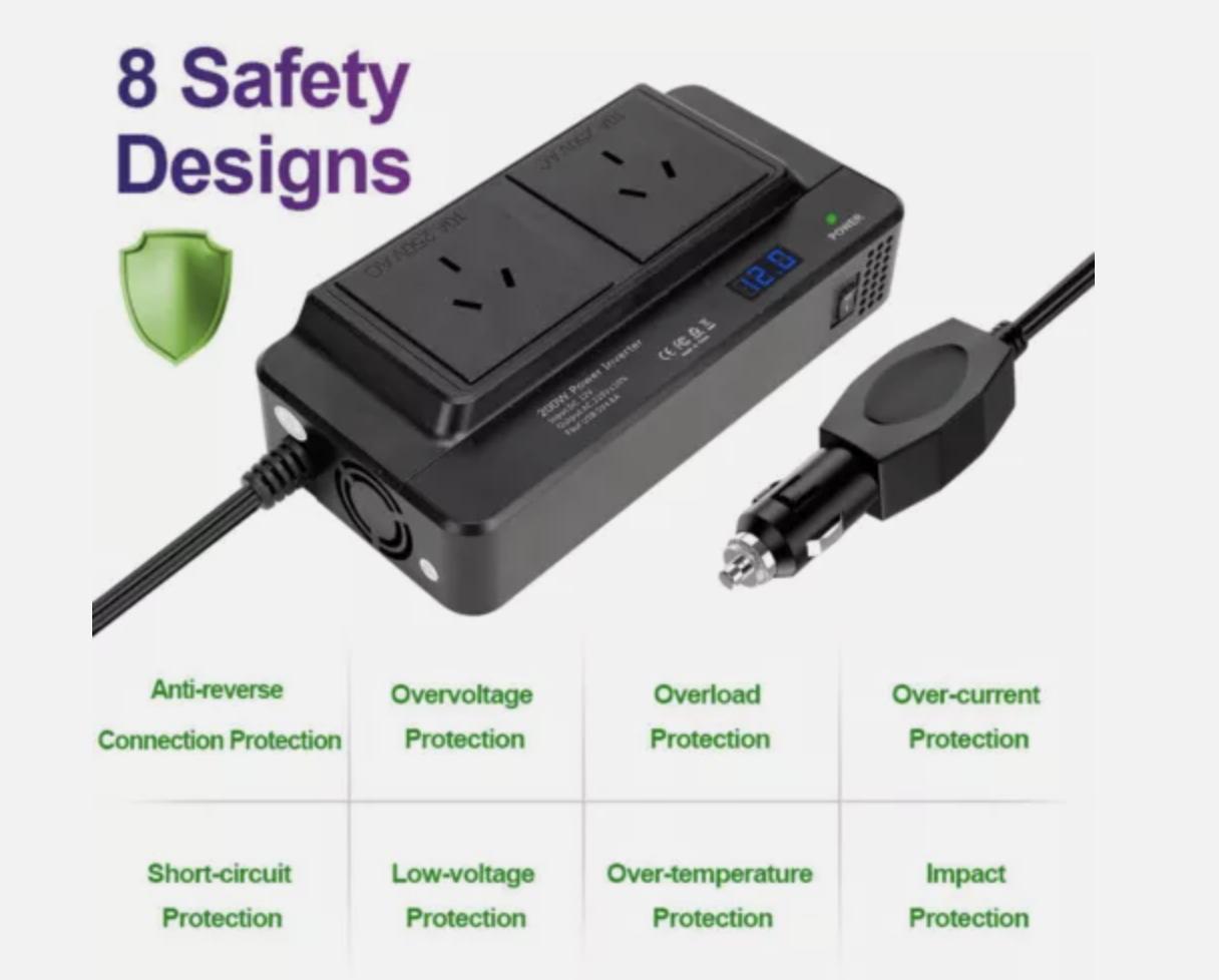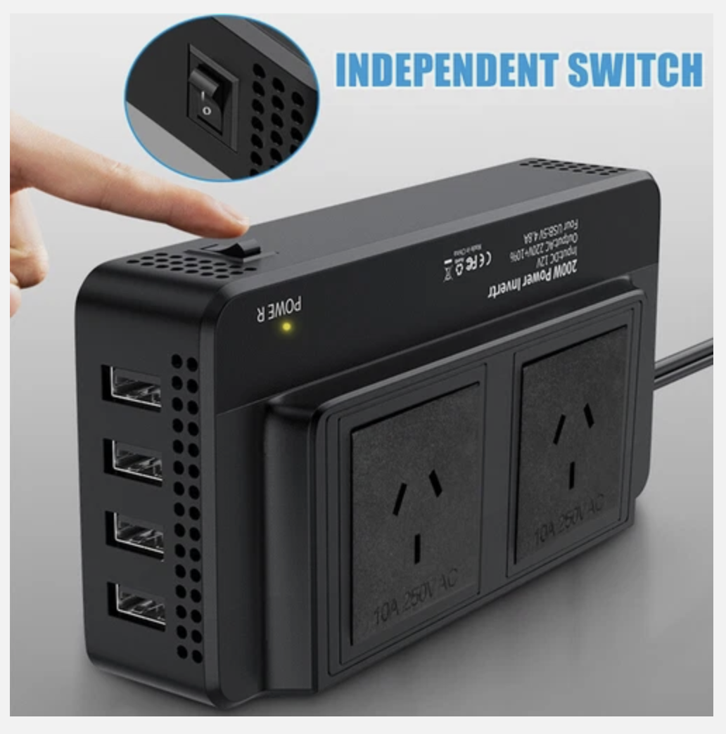 - 200W multifunctional DC 12V to AC 240V car inverter