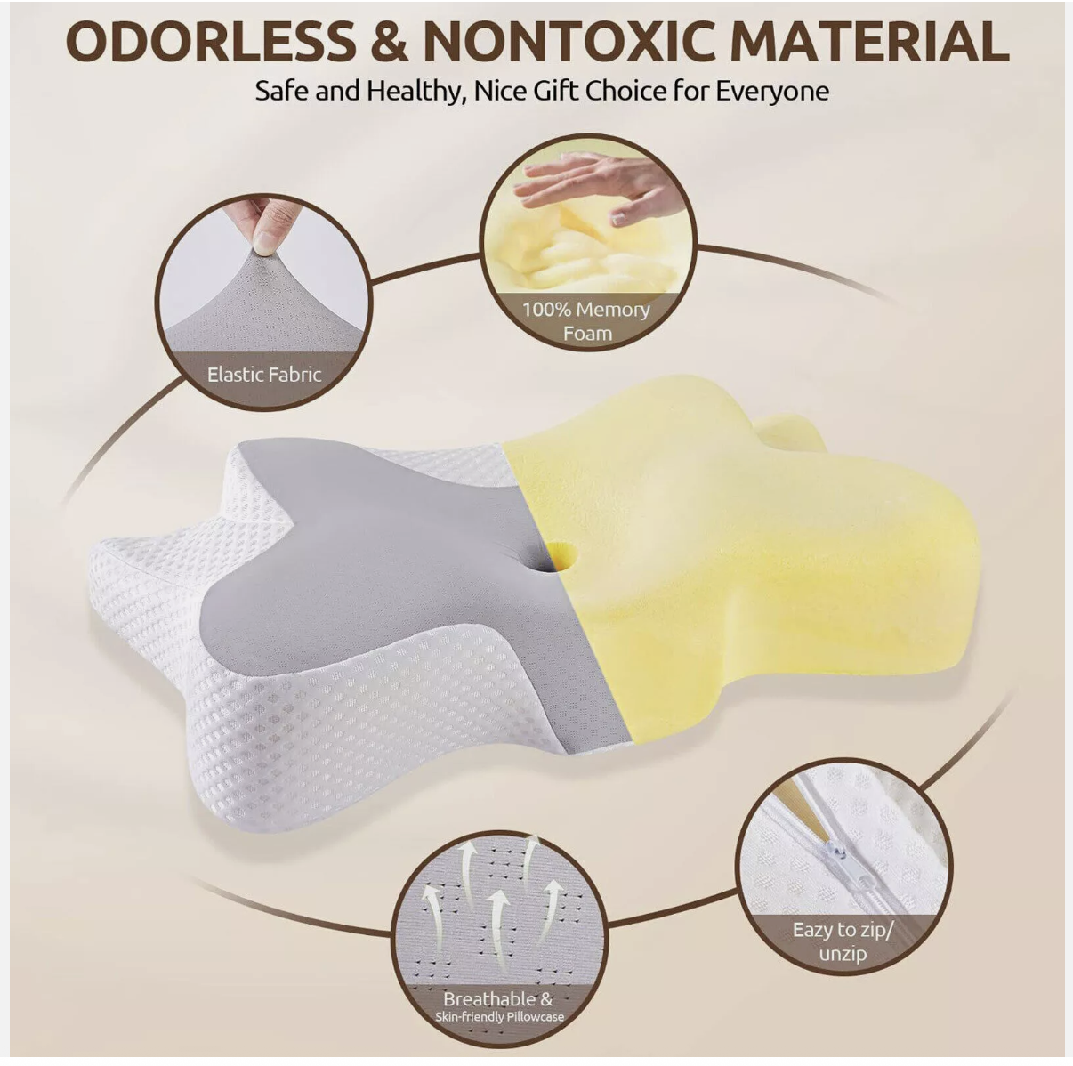 Features: 1. Good sleep is a dream that can be achieved. Tired of waking up with neck pain and discomfort? Look no further! By combining the benefits of a traditional bed pillow and a contour pillow, Our ergonomic hollow contour pillow is here to transform your sleep experience. The hollow concave surface, tilted at a 15-degree angle, skillfully cradles your head, while maintaining the natural curve of your neck and aligning your spine flawlessly. Wake up feeling refreshed!