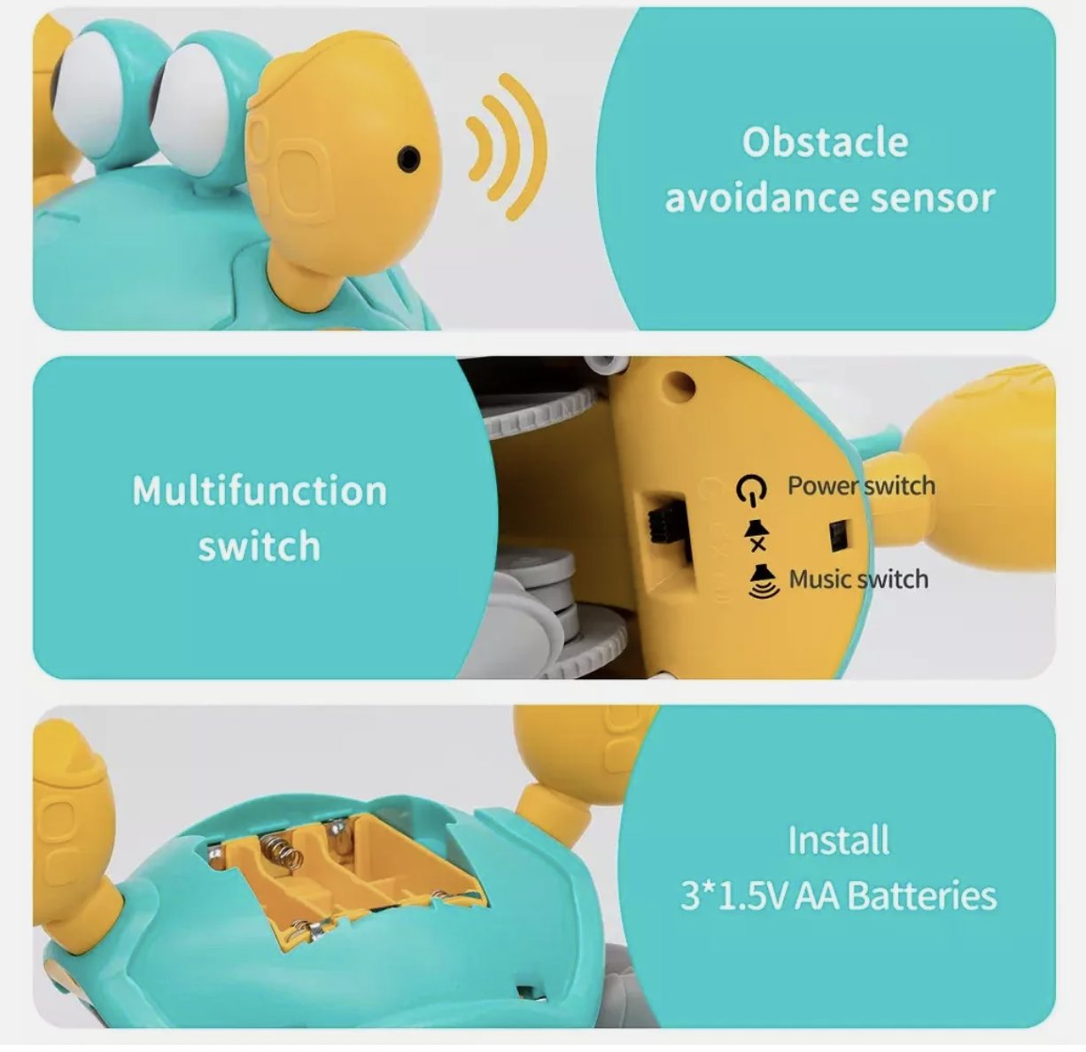 Equipped with a built-in sensing device, this clever crab toy detects obstacles in its path and automatically changes direction to escape. This interactive feature keeps kids engaged and entertained for hours!