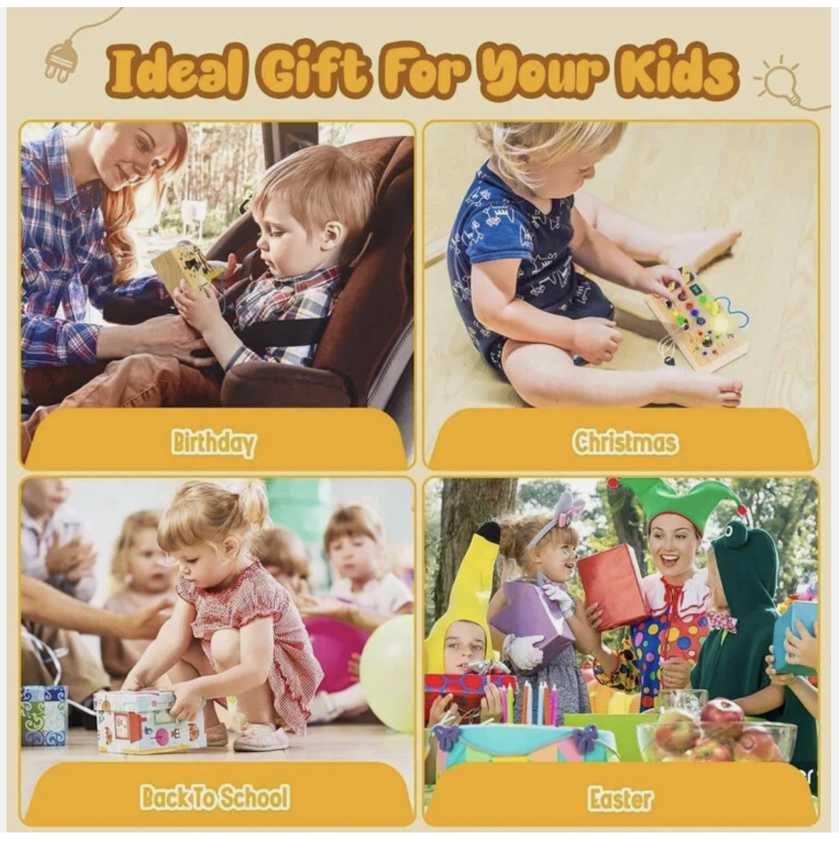 Montessori Busy Board w/ LED Light Switch Wooden Board Sensory Toys for Toddlers