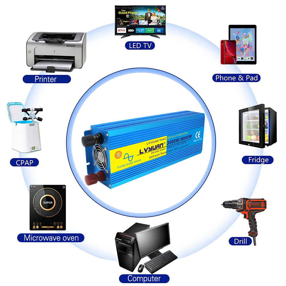 Pure Sine Wave Power Inverter 3000W 6000W 12V To 240V Caravan Camping Boat