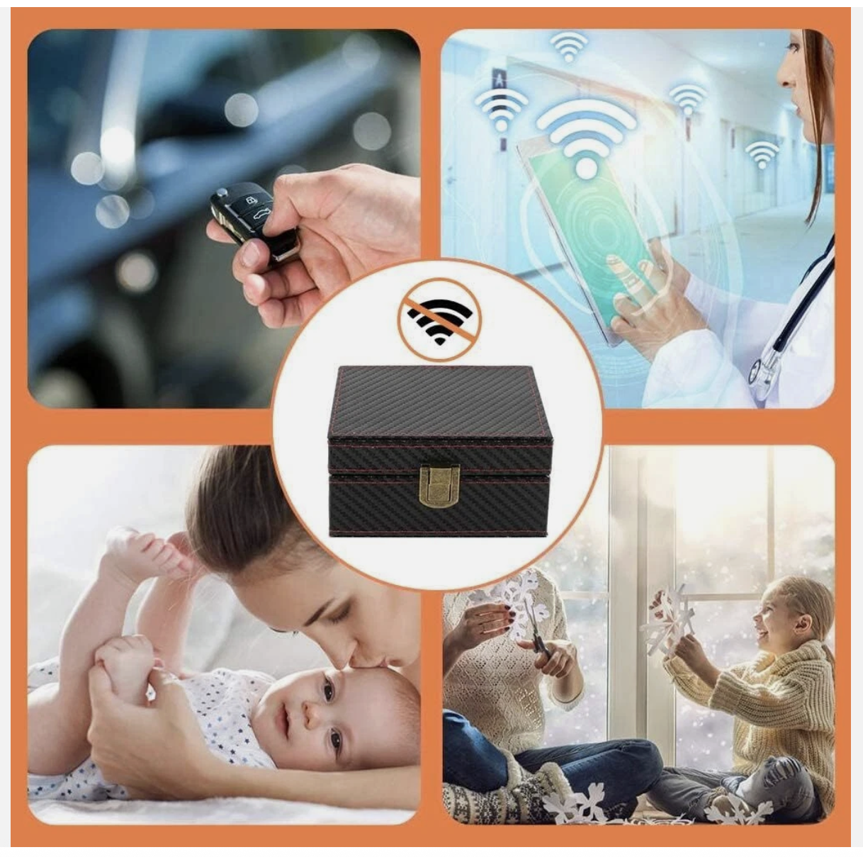 [GOOD CAPACITY]: This car key safe box can hold 4 car keys so all family members' car keys can be put together. Strongly blocks signals with double layer carbon fiber PU material which guarantees for signal isolation.100% block.