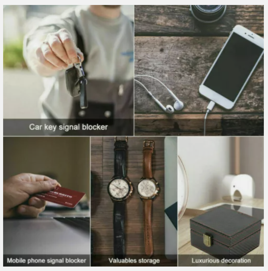 [SHIELDING SIGNAL]: The car signal shielding box completely covers the signal shielding cloth to prevent signal leakage. It can block car key signals, Bluetooth signals, WIFI signals, GPS signals, GSM call signals, NFC and more. But the huge difference, it looks way more elegant and luxury, high-end grade.