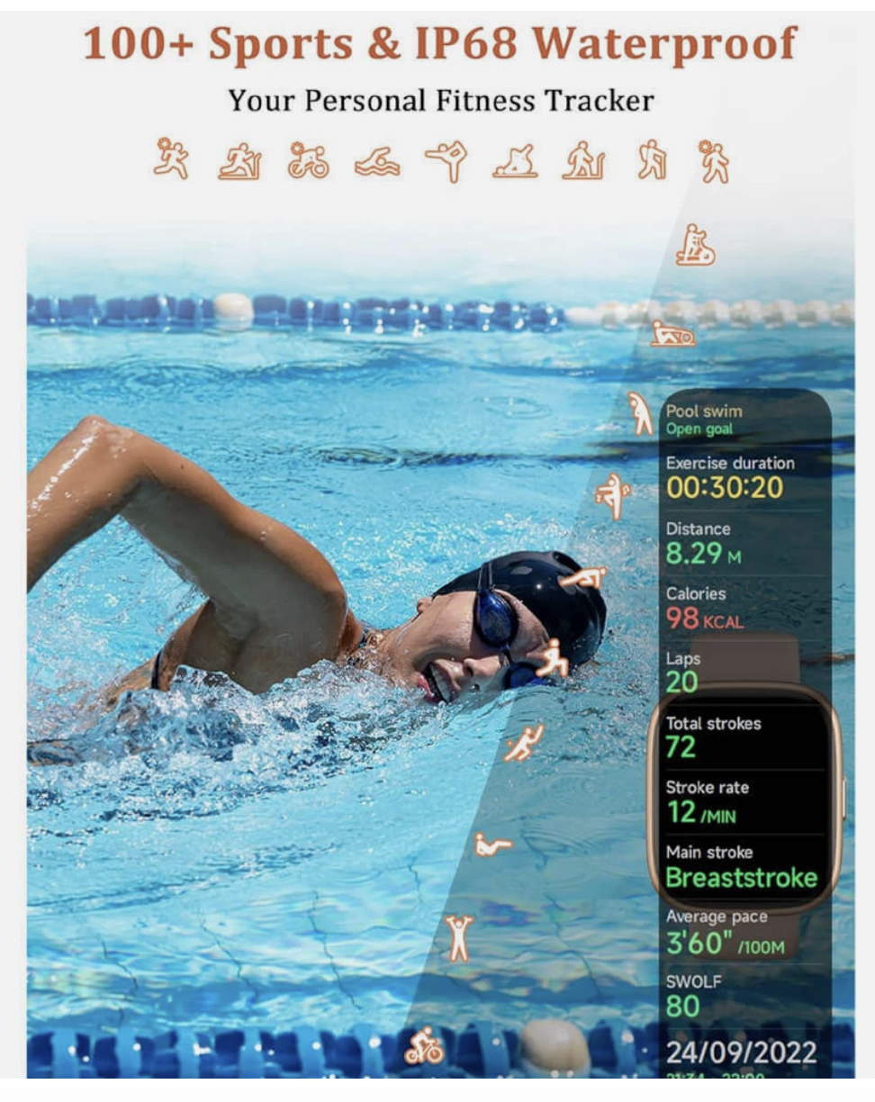 【100+ Sports Modes Fitness Tracker】The fitness smart watch can accurately record your steps, calories, distance, heart rate and blood oxygen and detect your health status and real-time activity status. 100+ sports modes to choose such as walking, running, cycling, hiking, yoga and more. Gives you a detailed look at activities throughout the day.